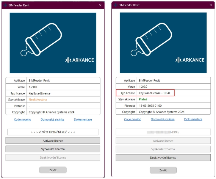 Na zadaný email je během několika minut zaslán licenční klíč pro aplikaci. Tento klíč vložte do dialogového okna License Spring a potvrďte tlačítkem Aktivace licence.