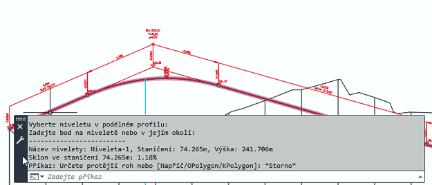 <img src="https://878884564-files.gitbook.io/~/files/v0/b/gitbook-x-prod.appspot.com/o/spaces%2FNqrZZh9xycBSlu5BVOCQ%2Fuploads%2FcrtFrIK9sScMSPZtGXsC%2FSklonNivelety_32.png?alt=media&#x26;token=8cd48740-6061-48c1-81b8-bc286b25e57c" alt="" data-size="line"> Pomocí těchto dvou „dotazovacích“ funkcí lze rychle zjistit aktuální sklon profilu v konkrétním staničení a to buď odkliknutím v zobrazení podélného profilu nebo na trase.